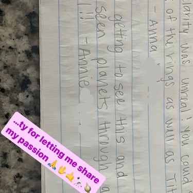 2) Family Package: $300 for a family gathering with activities for up to 10 people for 2 hours of telescope time.