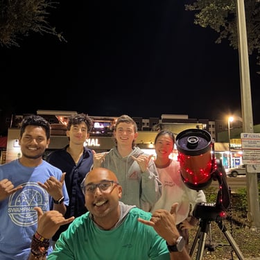 AstronomyKart is a platform that is committed to offering unique and immersive EYE-WITNESS first-hand astronomy experiences through various programs such as ASTROCAMPS...aka Astronomy camps and TELESCOPE sessions in FLORIDA for all ages. Our mission goes beyond simply observing the stars; we also strive to promote STEM education. At ASTROnomyKart, we believe that by combining the wonders of the universe with science, technology, engineering, and mathematics, we can inspire and engage young minds in the fascinating field of astronomy. Whether it's exploring the night sky with a telescope, participating in interactive workshops, or attending our astronomy camps, we are dedicated to providing individuals with firsthand experiences that will ignite a passion for astronomy and cultivate a deeper understanding of the universe. Join us on this incredible journey of discovery and exploration.